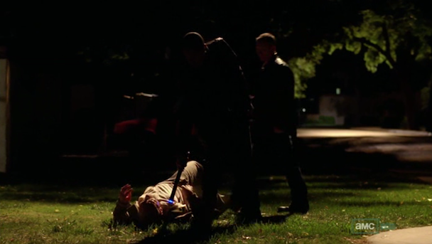 Jesse sure knows how to be a very cute guy when he needs to be. Although we could all watch Jesse and Andrea's son play Sonic all night, it is soon interrupted by Walt knocking on the door. Jesse refuses to let him in, of course, and pushes him halfway down the lawn. Walt tells Jesse that he's scared for his life, basically, and doesn't Jesse know that if Gus knows he can cook alone he'll kill Walt? Even though it's clear that Jesse does not intend to let this happen he responds, "Last time I asked for your help you said I hope you end up buried in a barrel in the Mexican desert." BOOM. Then Jesse leaves, Walt turns around and New Gus Guy and another guy are standing behind him with a taser. Then they tase him a lot. Uh-oh.