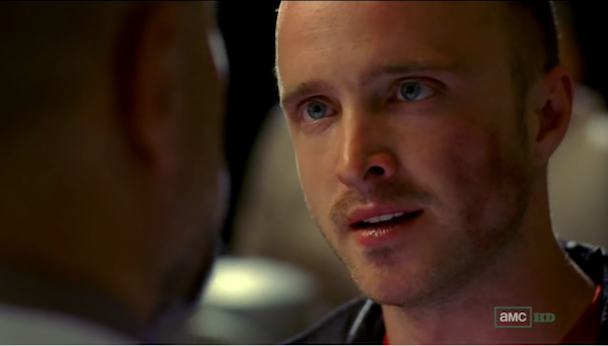 GROSS. He tells Walt Jr. that he got beat up because he was gambling, and asks him not to tell Skyler about it because he'd "never hear the end of it." The "gambling" story doesn't really explain anything, though, so Walt Jr. presses further, asking him who he got in a fight with. Then Walt starts to cry! And it is sincere! He tells Walt Jr. that he made a mistake, and it's his own fault, and he had it coming, and he is sorry. Aww, Walt. If I didn't think you were so terrible I would be very touched but I'm only kind of touched because honestly you have been the worst. But, in any case, it is very sad and remorseful and hopeful. Maybe this means he won't be such a jerk anymore. Walt Jr. puts him back in bed and before he leaves the room, Walt asks him if he likes his new car. "Uh, no, it's a GD PT Cruiser of course not," says me. "Sure, I do. It drives great," says Walt Jr. "That's good, Jesse," says Walt. UH, WHAT! *CARTOON FACE WITH EYES POPPING OUT!* I am often weary of things that I see as too heavy-handed in shows (and movies, and music, and everything) that I really love, and this did seem a little heavy handed. But also I did like it, and obviously Jesse's on the guy's mind so I'll give it a break. Aww, Walt and Jesse. They love each other!!!!