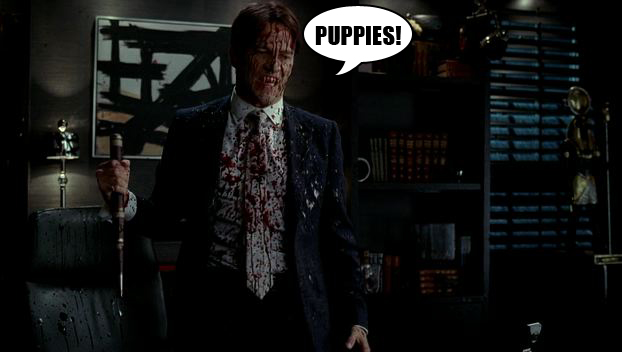 The Vampire Prime Minister comes to visit Vampire Bill and Vampire Eric and she explains that there is a death warrant out on them, but she doesn't actually explain why? Then she says that she got fired from her job and she wants them to join her in a revolution against the Vampire Government. Then Eric kills all of her guards and Bill stabs her with a croquet mallet and screams "WE ARE NOT PUPPIES!"