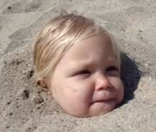 Good grief, how many times does she have to say it? MORE SAND! This is a good idea, though. Maybe if we just pile the sand high enough, and pack it tight enough, and refuse to answer simple questions, but remain cute about it the whole time, maybe our parents will leave us here and we can live in this summer FOREVER! (Summer's almost over, guys. Better GET BURIED.) (Via RatsOff.)