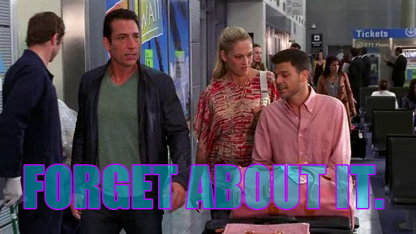 His over-tanned face in his tight v-neck t-shirt. Her matchy-matchy pink luggage. The fact that they allow Turtle to push their luggage cart for them, and insist on being driven everywhere in a limousine, and act really bored when you try to talk to them about actual business because they just want to eat fruit and take cellphone photos of celebrities? Nonsense. HEY-OOHHHHHH. The city's got a million stories, but these two aren't one of them. Anyway, Turtle worked really hard to bring these guys out here and they don't even seem that interested in his proposal. It is almost as if they know that he is not a real businessman and that this is whole "baked clams in LA" thing is a terrible idea!