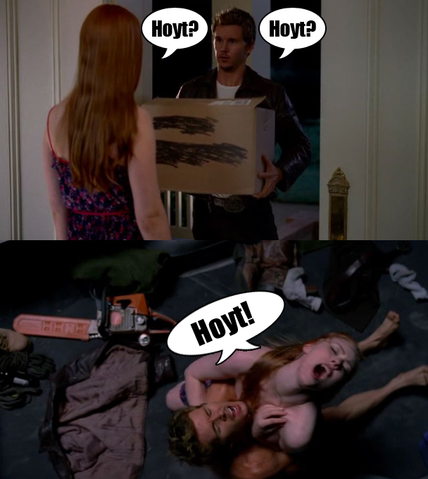 Oh, and Jason Stackhouse fucks Hoyt's ex-girlfriend Vampire Jessica two days after they broke up in the back of his truck. He tried to be a good friend, but, you know, two days had passed, get over it, Hoyt. Move on with your life.
