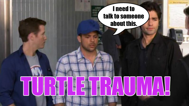 Turtle won't stop talking about how he saw the dead man's brains. Yikes. Seeing a dead body, much less a dead body that has suffered a violent death a few feet away from you, is a genuinely traumatizing event and can often take years for someone to process and come to terms with. Luckily, it only takes Entourage zero seconds to turn it into a throwaway joke. First, Scott Caan asks him what they look like, but in the way that Scott Caan might ask you what your mother's tits look like. Then Drama talks about what they used to make fake brains on the set of some bullshit TV show he was fake on in the make-believe 1980s. Turtle is really struggling here, guys. A little while later: "I saw brains," Turtle says for the ninth time. "I'm assuming they weren't Drama's?" DING DONG. A MAN IS FUCKING DEAD, YOU WALKING SACKS OF SHIT.