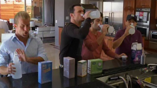 Up on the roof of the Roosevelt Hotel (deep in the Hollywood Mountains, apparently), everyone sits around anxiously awaiting the results of Vince's drug test. Oh man, I AM ON THE EDGE OF MY SEAT WONDERING WHEN THE MAGICAL PHONE CALL THAT RESOLVES THIS PLOTLINE COMPLETELY AND BENEFICIALLY TO THE UNTOUCHABLE MAIN CHARACTERS WILL COME THROUGH AND SET THEM BACK ON A TRACK TOWARDS SUCCESS AND $$$$. Oh, here it is. So, yeah, Vince passed his drug test. The end. This part, too, is incredible because everyone is actually saying things like "This is incredible," and "I can't believe this worked out so easily," and "This is so great, it's almost impossible to even believe that this actually happened," because right. Vince takes a second to literally map out what the next three successful steps in his endlessly successful career are going to be, just in case we forgot. Then E asks Vince if he took "it" off and Vince gets kind of sheepish and sly and E laughs and is like "You silly bastard," or whatever. And everyone is like "what are you lovers talking about?" and the episode ends with A GAME OF DILDO HOT POTATO ON THE ROOF OF THE HOTEL I AM NOT JOKING WHAT THIS SHOW THIS POOR SHOW MUST FUCK LIKE DOG SHIT.