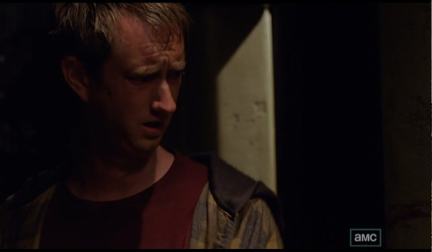 And then we're at Walt's condo. And originally I thought that meant that that guy was outside of Walt's place? But now I'm second-guessing myself and I think maybe it meant he was outside of Jesse's place. I'm not sure. But he's SOMEWHERE and clearly up to no good.