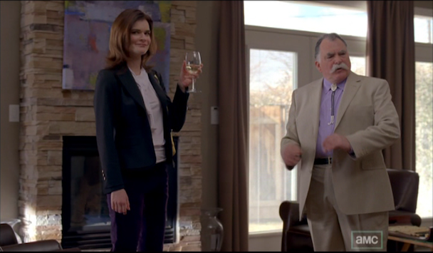 Back at Skyler's house, she and Walter wait by the phone for a call from Bogden. Walt is convinced that he won't be calling, while Skyler stays strong. The phone rings. PHEW, WE GOT THERE JUST IN TIME! It's Bogden! Walter seems proud of Skyler! It is very cute! But then she offers him a lower offer than before and Walter gets upset. Skyler explains to him that it won't look right if they don't try to get the best deal, which makes sense, but Walt thinks she blew the whole thing. Surprise, she didn't! Bogden calls back. "Let's make a deal," they all yell right into the camera.