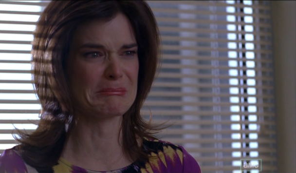 Then we're taken to Marie. Oh, Marie. She's taking a tour of a house, posing as a divorced mother named Tori Costner. Last week we were able to see how everyone was dealing with their newly terrible lives (they were all dealing with them badly), but Marie's coping mechanism wasn't explored. Now we get to see how she's handling it and, hey, it's also bad and weird! She comes up with a whole big story about how she's going to home school her kid and how she works with clay (?) and tells it to Colonel Sanders after she asks for a wine refill, which was a great idea actually.