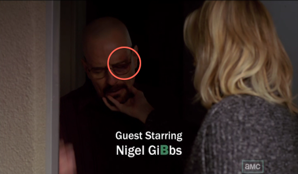 Episode three opens with Walt walking into the lab looking kind of happy, which is weird I think. Why are you kind of happy? Your life is a wreck! But, sure, Walt is kind of happy and he pours himself a cup of coffee from the very intense and scientific coffee maker from last season and everything seems great, UNTIL. Until he hears the loudest security camera of all time above him and is upset about it. Uh, Walt, no doy there's a security camera. Remember when you tried to murder Gus but it didn't work and then you talked with Mike about how you still really wanted to do it? You dummy! They certainly didn't have to install the loudest security camera of all time, though, that I can sympathize with. So he says "son of a bitch" and gives it the finger. Cue intro notes!