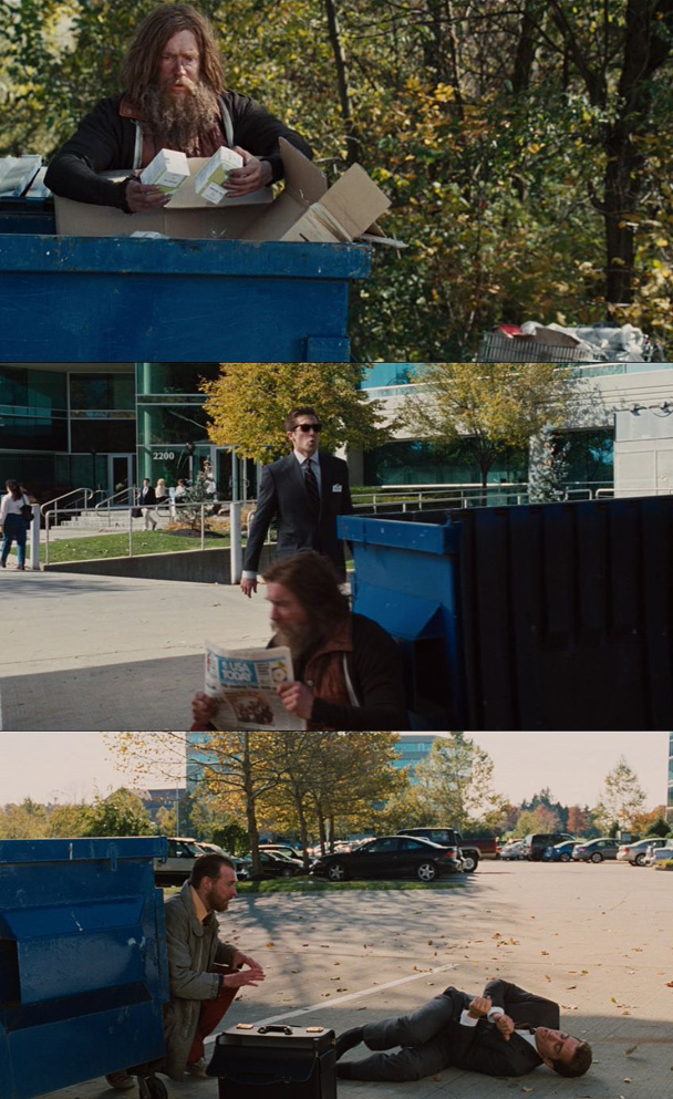 That seems mildly unethical to say the least! Oh, speaking of unethical, there is also this mini-plot in which Jake Gyllenhaal keeps stealing his competitor's medical samples from the drug closet and throwing them in the dumpster, which is, like, FUCKING INSANE and probably A FEDERAL CRIME, but the weirdest part is that they keep showing this homeless person stealing the anti-depressants out of the dumpster and slowly over the course of the movie HIS LIFE GETS BETTER AND HE IS NOT HOMELESS ANYMORE. Well, that's just fucking offensive.