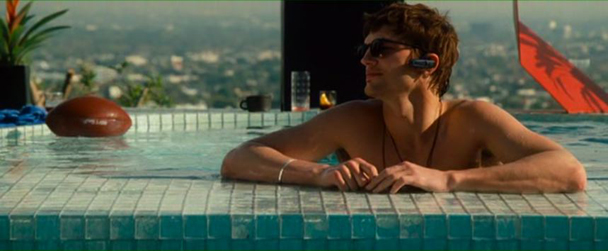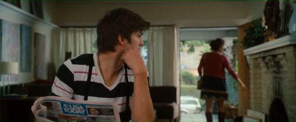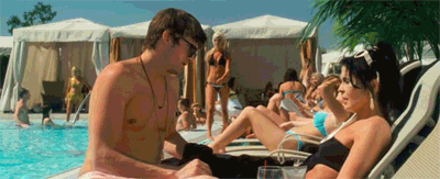 Let me tell you about this one part that is completely inconsequential but I think says a lot about Spread. At one point, Ashton Kutcher is in the hot tub at the mansion on his Bluetooth, the morning after he threw a rager. Anne Heche is in New York on business. Ashton is making calls, setting up dates with other women. Heather calls. They decide to go to dinner. As soon as she hangs up, it cuts back to Ashton Kutcher who rolls off a ledge and flops into the pool. What a life! But wait, wasn't he wearing a Bluetooth headset two seconds ago? Yes. So he rolled into the pool with a Bluetooth earpiece in? No, he is visibly not wearing it when he rolls into the pool. Your honor, if it please the court: