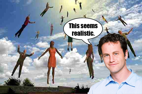 The well-known genius Kirk Cameron was preparing for the Apocalyptic event that he knew would be occurring on Saturday, May 21, 2011. He had his suit pressed so that he would get to heaven looking sharp, and he bought some healthy snacks like some mixed nuts and some fruit and a Vita Coco just in case the Rapture took a little longer than he anticipated. The way he figured, he and his family would get up early--if they could even sleep, they'd probably be so excited--and head up to the roof with a beach blanket and a transistor radio so they could watch the whole shebang. What a show! Best seats in the house! (He actually said stuff like this at the dinner table and while he and his wife were flossing at their his and hers sinks at night. She would smile and laugh and found it charming. She married him after all.) And then, poof! They would all be in heaven, and all of the other stupid cretins and also Jews would spend an eternity in hell.