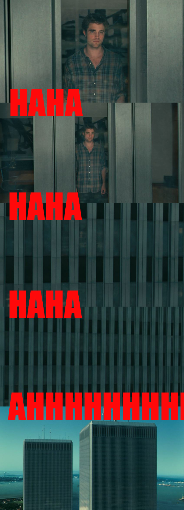 Remember Me opens on a subway platform in 1991 with the Twin Towers of the World Trade Center clearly visible in the background. Huh. I bet it's nothing. You know, filmmakers aren't actually very selective about what makes it into the frames of their movies, so he probably didn't even realize it was there. When he had it CGI'ed into the background. Anyway, a mother and her daughter are on the subway platform and get mugged and then the mom gets murdered. Some cops show up and it turns out one of them (Chris Cooper) is the little girl's father. "10 years later." Wait, that's it? Fair enough. 10 years after 1991 makes it....ah, who cares. Math is so hard! Now we are enjoying the story of Robert Pattinson. He is a vampire werewolf swamp thing student at NYU who loves drinking beers and smoking cigarettes and fucking girls that he never calls back. #swag #getHAZED.