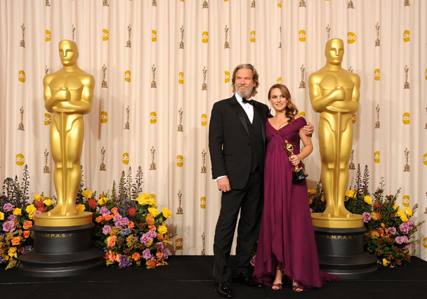 |HOLLYWOOD, CA - FEBRUARY 27: Actress Natalie Portman (R), winner of the award for Best Actress in a Leading Role for 'Black Swan', and presenter Jeff Bridges pose in the press room during the 83rd Annual Academy Awards held at the Kodak Theatre on February 27, 2011 in Hollywood, California. (Photo by Jason Merritt/Getty Images) *** Local Caption *** Natalie Portman;Jeff BridgesGET THE STEREOGUM DIGEST