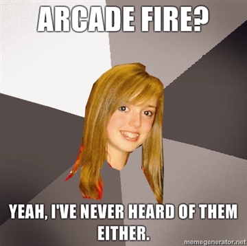 This site, WhoIsArcadeFire.tumblr.com and also the Twitter account @WhoIsArcadeFire basically just reposts other people being confused about who Arcade Fire is. Or sometimes people being confused about who the band "The Suburbs" is wondering why their album "Arcade Fire" won Album of the Year.