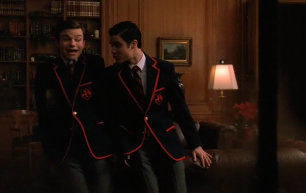 Meanwhile, over at Delicious Boymeat Academy, Blaine needs Kurt’s help rehearsing a song he’s singing for some shit or other. So, they scream “Baby, It’s Cold Outside”: