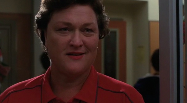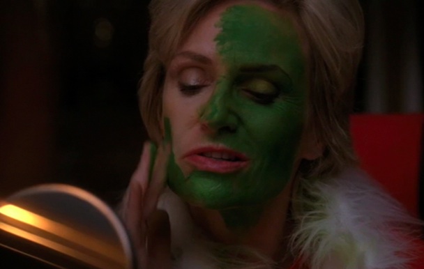Uh huh… That’s gotta be one of the weirdest things that’s ever happened on this show, right? Including k.d. Lang in the equation, doyoyoy. Guess she’s not “worth” promoting as a guest star? Or showing her face? Or, just having someone from the show sing it? God, she sounds gr8 though, right, and why is Sue dressed up like The Grinch for real? No one’s gonna see her.
