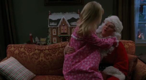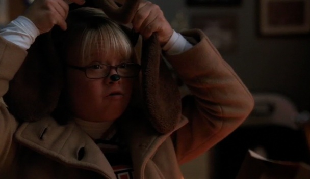 That night, Brittany the Perfect is tucking in her Barbie and Ken dolls (“Barbie took the early flight from Tampa” so she’s real tired), when she finds Santy Claus (Coach Bieste in drag) in her house. She’s elated, but then very sad when Santy Claus tells her that he/she can’t make Artie walk. Santy Bieste even tries to soften the blow, telling Brittany the Perfect about a certain husky little girl who asked Santa to make her pretty, but he didn’t, and then she learned to use her husky-ness to her advantage. Ugh, poor Coach Biest, Jesus. Then Brittany the Perfect is like “are you talking about Ricki Lake?” Lolz.