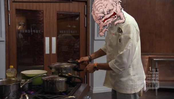 In the end, though, it is Stephen who goes home because all he cooked was steak and rice, and he cooked the steak poorly, and he fucked the rice. Stephen was literally a ticking elimination bomb, and yet, after all is said and done: POOR STEPHEN.