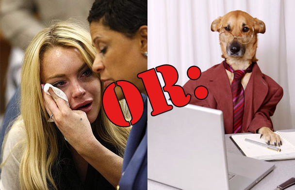 That being said, maybe you guys feel like talking about Lindsay Lohan going to jail. I don't know. Or MAYBE you want to post pictures of animals dressed up for a day at the office! It will be interesting to see which you decide.