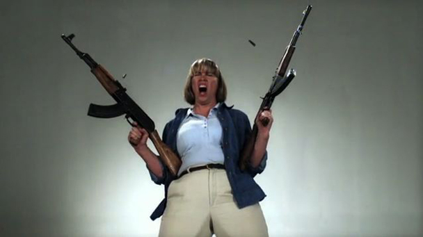 As horrible and scary as child abduction (which I hate!) is, human beings shooting automatic weapons is also horrible and scary. Regardless of how ill-fitting their pants and sweaters are! Of course, the worst part about this ad is that the whole thing comes laced with a heavy layer of irony (moms and mom jeans and action guns and heavy music and slow-motion and an aesthetically modern background) and personally, when it comes to child abduction, which I abhor and will always abhor no matter how strong your pro-child abduction argument may be, irony has no place. Child abduction is one of the few things in this world that remains irony-free. Because of how, you know, it is entirely terrible.