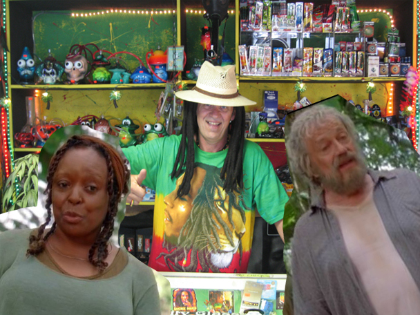 They explain that they don't like drama. Well then maybe you should be on a different show! SPEAKING OF DRAMA, Locke and Ben show up. Oh hey guys! Locke tracked Vincent's paw prints to Rose and Bernard's hippie camp. Because apparently the Smoke Monster took on the face of John Locke and the tracking ability of Kate. Guys, remember how Kate is a tracker? Never Forget. Locke wants Desmond to come with him and do the thing that's going to destroy the island, and if he doesn't, he's going to kill Rose and Bernard right in front of him, and he's going to make it hurt. What a jerk! Rose and Bernard never hurt anyone. They were too busy having old person tantric sex and making hemp tea. Desmond agrees as long as Locke promises not to touch them ever. Locke promises. His promises are super trustworthy, so no problem, let's go.