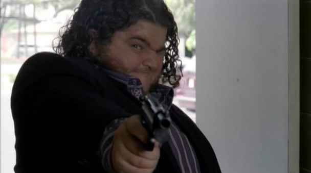 Anyway, Hurley shoots him with a tranquilizer dart.