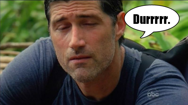 Laugh it up, laughers. AND NOW BACK TO THE ISLAND.