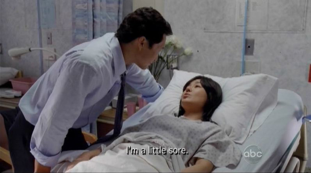 Juliette comes in (JULIETTE! Just kidding, that's not exciting. I mean, it's fine, but we knew she was going to show up no duh) to perform an ultrasound, and that is when Sun and Jin FEEL IT.