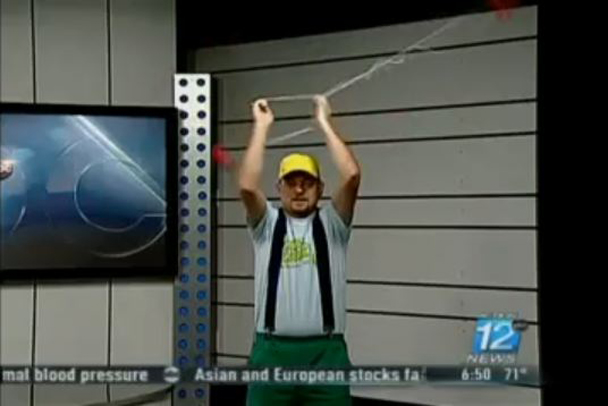 In the past couple of weeks, a young man named Kenny "K-Strass" Strasser (and also sometimes Karl "K-Strass" Strassburg) has been making appearances on local news morning talk shows in the midwest, and particularly in Wisconsin, to demonstrate the skills that have made him an "Award-Winning Yo-Yo Master." Sure. He has been divorced twice, doesn't have a girlfriend and doesn't WANT a girlfriend, his parents recently got divorced, he doesn't get along with his brother because of her wife, and he is having some trouble getting into schools lately which makes it harder for him to do the important work of inspiring children and saving the world through his company, ZimZam Yo-Yo, the world's first "green" toymaker. Set your alarm clock for this interview!