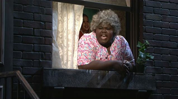 Oh jeez. Oh boy. OK. Well, on the one hand, Gabourey Sidibe is not known for being funny, and so there were very few expectations forced upon her in the run-up to this week's episode of Saturday Night Live. Just as when a professional athlete hosts the show and one anticipates a lot of fumbled lines and fouled dialog as the cast scrambles to carry the show to the finish line (get it? Sports stuff!), a "serious" actor is just supposed to get through their scenes as best/seriously as they can and let the comedians do the heavy-laugh-lifting. Gabourey Sidibe is considered an actor, right? She was nominated for awards for acting, right? Or was she nominated for awards in not being able to get through a single line of dialog without stumbling over words and then cracking up? Because if those were the type of awards she was nominated for, then this Saturday she would have WON ALL OF THEM.