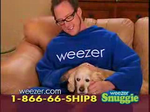 Weezer have made their own Weezer-brand Snuggie. It is real. You can buy it. They even made a commercial (after the jump), which is very similar to the original Snuggie commercial that became an Internet Sensation a year ago. Fair enough. Weezer gets to do whatever they want, this is America. But this would have been a lot funnier a year ago. I'm happy for anyone making Snuggie jokes at this point, and I'mma let them finish, but making Borat jokes is the best outdated, overused pop culture reference of all time. Get it? You get it. [Borat voice:] Success! Seriously, though, what happened? Did Weezer's Internet go out for a year and they're just catching up? "Hold on, guys, I'm going to call Time Warner just as soon as I finish sleeping with these teenage, Japanese groupies." That is what Rivers Cuomo says.