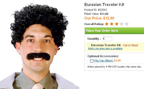 Hahahaha. "Very goooood!" Anyone who is still looking for a last minute costume idea is definitely going to want to check out this list from frequent Videogum tipster, Edith. It's amazing. I'm particularly fond of the costume that functions as both Neo from the Matrix AND/OR a priest. Perfect. "There is no spoon, my children." Although, the knockoff Justin Guarini wig is poorly labeled. "Star Afro"? No. More like "Runner Up Soon To Be Butt Of So Many Jokes For Rest Of Life Afro." Better.