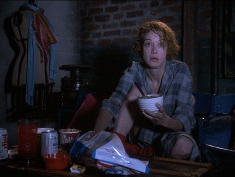 But also she had a boyfriend. Literal and metaphorical cold showers. Gary drives Melissa to her house and that is almost that, but then it is not that at all. She invites him in for coffee and he asks if she has decaf. He seems like a lot of fun. Always being pissy about squash and loving decaf coffee. Total Party Hound. Anyway, they drink wine and eat microwave ('80s!) pizza and reignite that old flame, but obviously Melissa is worried because she has spent five years in therapy trying to get over Gary Shepard. They make plans to hang out the next week and Gary leaves, but then he basically drunk dials from a pay phone right outside her apartment and is like "I'm lonely, let's make some terrible decisions together," and so he spends the night, where they both have dreams about getting married and Gary apparently sees marriage as being locked inside of a giant crib with another giant baby in a dress.
