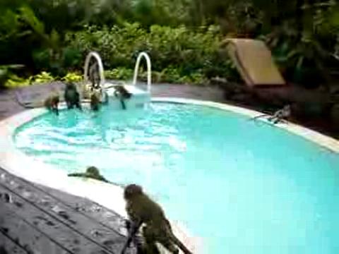 Here it is, early August, and I'm sitting in my office staring at a computer screen like an absolute IDIOT, while these monkeys (literally, they are monkeys) are having a fucking pool party? Ooh la la, look at me with my evolutionary advantages and my rational thought and my lack of a prehensile tail. Aren't I so great. CLEARLY I AM NOT. The summer is running through my fingers like the sands of a beach I still haven't been to this season, and meanwhile, these wonderful little guys are living life the way it was meant to be lived. Who is the savage beast now? We share 99 percent of our DNA with these guys, but apparently they have a bonus one percent FUN GENE. Unbelievable.