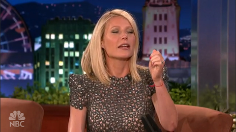 She appeared on the Tonight Show with Conan O'Brien last night, for some reason? She wasn't promoting anything. Just chillin'. I feel like when you call Gwyneth Paltrow up and ask her what she's doing, she sets the flute of champagne down next to the marble-lined indoor lap pool and says "just chillin'."