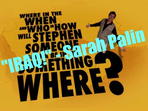 Has anyone else been on the edge of their seat all weekend to see if Stephen would mention Friday's Sarah Palin Twitter slip-up/plan to get Stephen killed by Twitter-reading terrorists on last night's show? If you missed it, Sarah announced to the world that Stephen's upcoming trip to the Persian Gulf would be specifically to Iraq, a fact that has not only not been mentioned by the show, but has been deliberately obfuscated in order to tease it out with false leads and an interactive message board clue game that so far nobody has solved. And Stephen did mention it in the show intro, albeit cheekily, probably because coming out and admitting it would have ruined the"Is Stephen going to...The United Arab Emirates?" segment later in the show. I like to think of it as an inside joke between Stephen Colbert and blog readers, because I would like to think that, wouldn't I?
