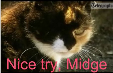 Maybe this is considered tres adorable in Cannes, but Midge would never make it on the mean streets of the internet's cat video skid row. (Thanks for the tip, Sara!)