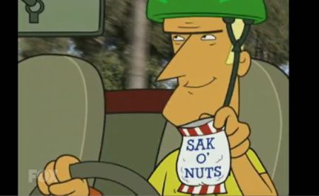 It's not like it's a crazy-original joke idea in the first place, but something is lost between Kenneth's cautionary tale and Sit Down, Shut Up's obnoxious, obvious animation-for-13-year-olds. (I only suffered through the first episode of SD, SU. If it's somehow gotten better, or even watchable since then, do let me know. Until then, I'll continue trying to ignore it, since it involves such talent as Mitch Hurwitz, Will Arnett, and Nick Kroll. (And the producers of Two And A Half Men -- let's just put all the blame on them and move on.) (Thanks for the nutsack tips, Brad, Tyson, Cindy, N., C.N., and "Anonymous"!)