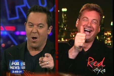 Based on his recent success as a viral video superstar (we did it!), Joel Bauer, aka, "The Business Card Guy," was a guest on Red Eye With Greg Gutfield last night. At first, when I saw his laughing, smiling, happy-to-be there face and heard him say his Business Card Guy video was just a character created by the video's director (Troy??), I was crestfallen, but then he totally launched into crazy infotainer motivational speaker content-less ranting and raving and everything was okay in the world again! Here it is!:
