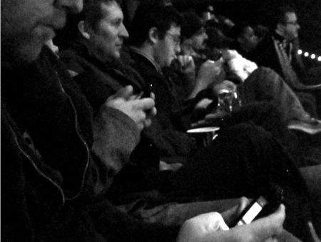 gabe: "do you think organized events where people twitter from teh back of the theater as a joke in movies"
