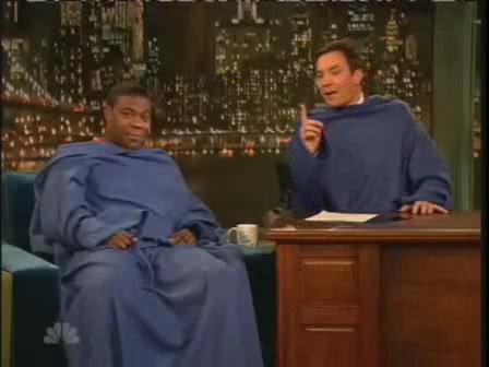 In a very touching chapter of the Videogum "Tracy Morgan Promise," Tracy visits Late Night with Jimmy Fallon and the two "make up" wearing Snuggies. Fallon set the tone by making the audience uncomfortable not once but twice in the lead-up to the interview, reminding his audience both in Friday's pre-amble and Thursday night's teaser that Tracy Morgan had been speaking badly of him in the press (although who hasn't? ZANG). Sure. The offending quote, which was widely circulated on the blogopolis was: