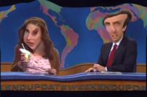 I didn't include this in SNL: Just The Funny Parts, because it isn't one, but in a Weekend Update segment this weekend, SNL made their stance on bloggers known with a mouth-breathing portrayal by Michaela Watkins. For anyone taking Intro To Rhetoric, this is a perfect example of a STRAW MAN: