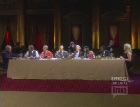 For the Elimination Challenge, the contestants draw knives with famous chefs' names on them from the old Elimination Challenge knife block. They will each have to prepare the ideal "last meal" for a famous chef. Now that is an interesting challenge! That's what happens when you get down to a handful of people that you can actually distinguish from each other. None of this "four lords a leaping" bullshit.