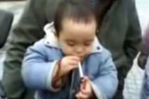 I once got grounded for a week for teaching my baby brother a trick: I would say "You down with OPP?" and he would reply "Yeah you know me!" Well, I would like an official pardon on that grounding now that I've seen the trick these terrible parents have taught their 3-year-old: