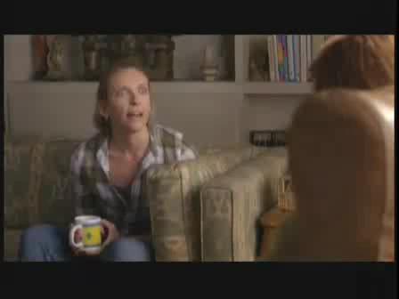 Tara makes a friend -- her sister's coworker at the Amway Vitamin Pyramid Scheme company who has hired her to paint a terrible pastel mural on her wall for some reason. Here is Tara telling her shrink about her new friend. Notice that the shrink talks about Tara's (faaake) condition as being a "system" that was "set up" to "protect" Tara from the trauma that happened in her life that she doesn't remember: