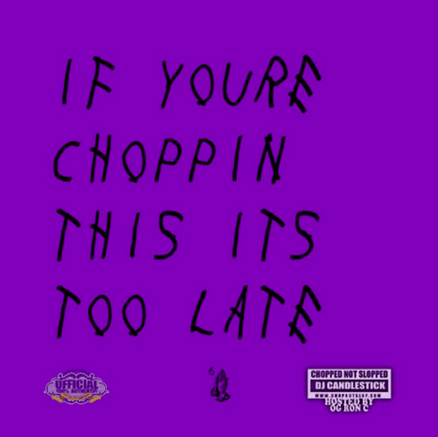 Ronald Coleman, aka OG Ron C, carries on the Houston chopped and screwed tradition that DJ Screw created in the early '90s. Coleman is taking on Drake's new surprise mixtape/album If You're Reading This It's Late, and to preview his slowed-down version -- aptly dubbed If You're Choppin This It's Too Late -- he's shared a torqued version of the track "Madonna." But aside from hearing Drake's voice in an unnatural lower register you can also hear a brand new verse tacked onto the chopped version. In the previously unheard verse Drake continues his directives, telling the could-be-popstar-old-flame not to get too dressed up and to remind him where she lives. Listen below (circa 3:33).