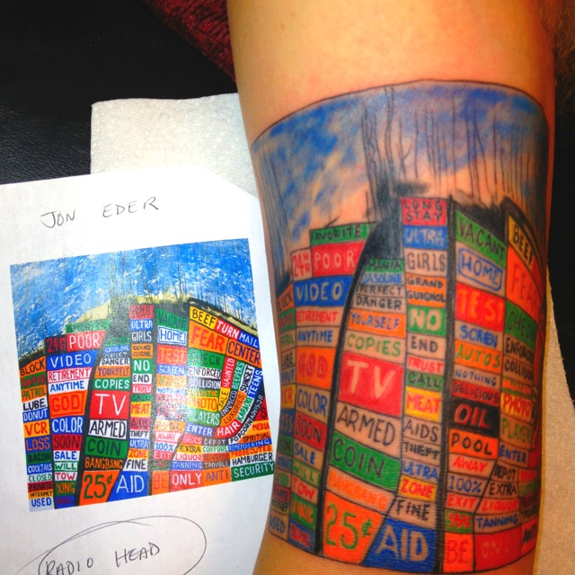 The same might be said of this, um, creative King Of Limbs meets OK Computer tattoo.