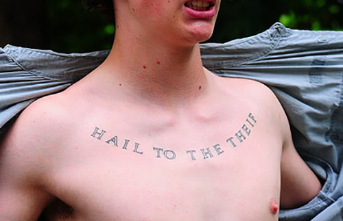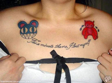 Unlike Radiohead albums, it's not really fair for me to rank band-inspired tattoos from worst to best. At the end of the day, that's someone's art and another person's flesh that I'm critiquing, and this isn't the right platform for it. Who am I to declare this misspelled Hail To The Thief chest piece...