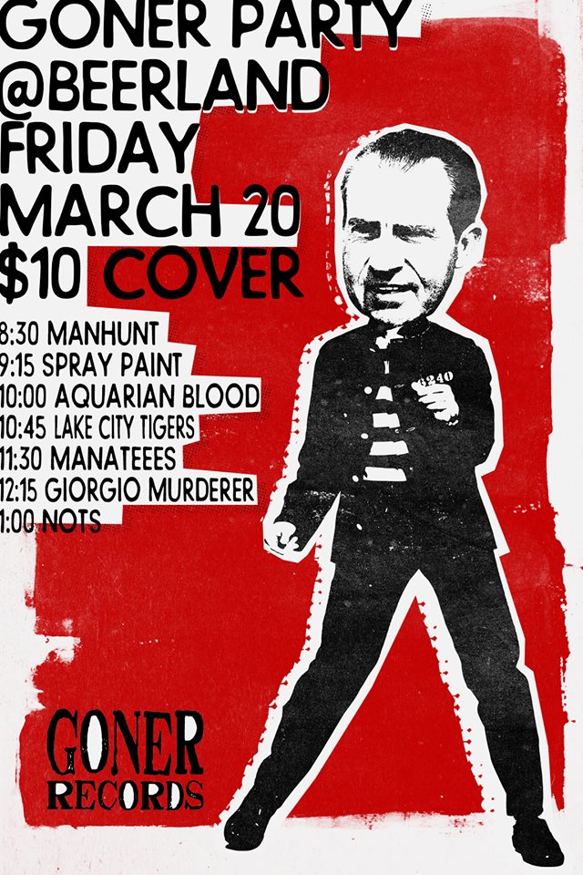 The Savage Mind 7" is out 4/18 (Record Store Day) on Goner. Aquarian Blood will be playing the Goner party at Beerland in Austin during SXSW this week. Some of the bill's other highlights include Spray Paint, Nots, and the awesomely named Giorgio Murderer, who just put their new Record Store Day single "Lazer Lord" online. RSVP here and check out the poster below.