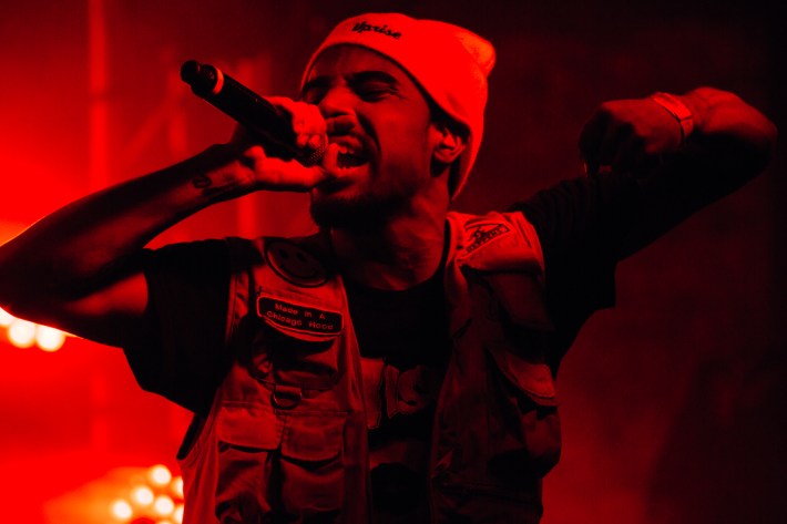 Vic Mensa's 2013 mixtape Innanetape was the kind of project that creeps up on you, gradually ingratiating itself over days and weeks. In the 17 months since, Mensa has kept gradually but unmistakably building a head of steam, showing he's every bit as fascinating as fellow Chicago upstart and longtime collaborator Chance The Rapper and maybe even more likely to become a household name. He's pushed the jazzy, electro-organic hip-hop sound further into mainstream pop and electronica, most notably on the warmly received sing-song house experiment "Down On My Luck." He was part of XXL's latest Freshman Class. Last summer festival season, he spent his 21st birthday performing Gorillaz's biggest hit on stage with Damon Albarn at Governors Ball and pulled off a wild "Seven Nation Army" cover at Lollapalooza. And recently, he's become the latest young Chicago talent to come under Kanye West's wing, guesting on Kanye's So Help Me God opener "Wolves" and joining Kanye on stage everywhere from London club shows to Saturday Night Live's massive anniversary special. So when Mensa closed out Chicago Made's SXSW showcase at The Main, there was at least some possibility Kanye would be waiting in the wings, ready to grace us with one of those anointment cameos superstar rappers often bestow on their protégés. He wasn't there, but it didn't matter: Mensa was emanating more than enough star power.